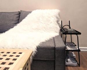 The apartment features one bedroom and a bathroom equipped with a bidet and shower. The living area includes a seating space, sofa, dining area, flat-screen TV with video on demand platforms, and free Wi-Fi throughout. Guests have use of a fully equipped kitchen with a microwave, stovetop, fridge, and essential amenities such as soap and conditioner. Additional comforts include slippers, non-feather pillows, towels, bed linen, and bottled water.