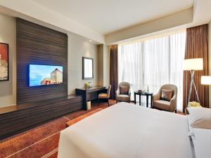 The hotel provides spacious rooms with air conditioning and free WiFi. Each room includes a flat-screen cable TV, safe, electric kettle, complimentary minibar, seating area, and a private bathroom equipped with a shower, hairdryer, and free toiletries. Additional amenities include a wardrobe or closet and an adapter for convenience.