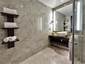 The room was clean and spacious, accommodating three adults and one child comfortably. The bathroom was large, and the entire room remained spotless throughout the stay. Complimentary snacks and drinks from the minibar were provided, which is uncommon in hotels. Staff members were consistently friendly and helpful. The hotel featured an on-site casino and restaurants within walking distance.