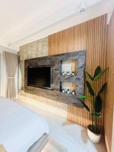 В этих апартаментах с кондиционером имеется спальня (1), а также ванная комната (1) с биде, бесплатными туалетно-косметическими принадлежностями и ванной или душем. В номерах Muji-Inspired Condotel at Shore 2 WIFI & Netflix установлен телевизор с плоским экраном.