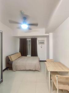 Die Unterkunft S Tower SYNC Residences hat 1 Schlafzimmer mit Klimaanlage, einen Essbereich und eine voll ausgestattete Küchenzeile mit einem Kühlschrank.