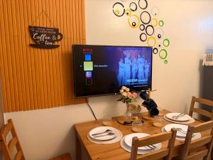 The apartment includes air conditioning and heating for comfort throughout the year. Inside, guests will find a fully equipped kitchen with a microwave and fridge alongside kitchenware for meal preparation. The living area features a flat-screen TV and free Wi-Fi extends across the property including common areas.