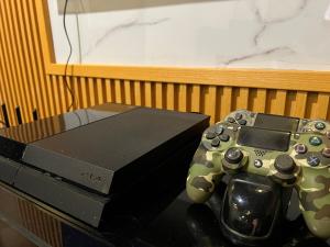The apartment includes a fully equipped kitchen, dining area, and a terrace. Inside, guests will find a flat-screen TV with streaming services and a PS4 for entertainment. The room provides essentials such as bed linen, towels, soap, and hypoallergenic pillows. A clothes rack, desk with power points nearby, refrigerator, minibar, and smoke detector add convenience. The flooring consists of tiles or marble.