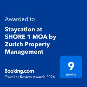 Stayed at Staycation at SHORE 1 MOA by Zurich Property Management? Your experience is very valuable to us and other guests. Leave your review! Thank you.