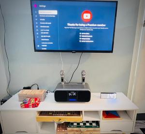 The air-conditioned aparthotel includes a living room and a fully equipped kitchen with a fridge and kettle. The bathroom contains a shower, bidet, slippers, and free toiletries. Guests have access to hypoallergenic bedding options including non-feather pillows and extra-long beds. A flat-screen TV with streaming services is available along with a work desk for convenience.