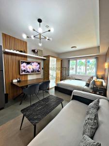 Questo appartamento con una camera da letto dispone di cucina completamente attrezzata e un bagno. L’area soggiorno è dotata di TV a schermo piatto per l’intrattenimento, mentre la struttura mantiene una politica non fumatori.