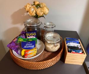 El apartamento dispone de un dormitorio equipado con ropa de cama fresca y almohadas sin plumas, una sala de estar y una cocina independiente equipada con placa para cocinar, microondas, cafetera, hervidor eléctrico y utensilios de cocina. El baño incluye bidé, pantuflas, champú, secador de cabello y toallas. Los huéspedes pueden utilizar la lavadora dentro del apartamento.